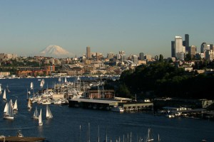 Maritime. Navigating water and hills to find your way along winding roads between neighborhoods that sit atop hills or at their base, called Queen Anne, Capitol Hill, Belltown, Madison Park, Ravenna, the U District, Fremont, Phinney Ridge…boats, barges, ferries, sailboats, sea planes over head, draw bridges, the smell of the sea. The homeless fishing off of the piers for their food. Crisp, wet air. Oak trees, fir trees, wet asphalt. Skies an oppressive, low-hanging grey for most of the year, erupting in a veritable Garden of Eden for the summer. Families, animals, water, parks. Native American names on suburbs and Chief Seattle. Hip cafes, restaurants, barber shops and music shops. Recycling everywhere. Cooperative food markets. Earnest, well-meaning people with hippie delusions even as they are living the lives of Yuppies. Political correctness that often borders on fascism. Amazing beer and coffee. Great Japanese and Thai restaurants. Fine dining meaning that you wear your good fleece out for dinner. Rules abound for swimming, kayaking, canoeing in the various lakes. Live music in small and large revues. The best outdoor store in the world with a climbing wall and lifetime guarantee on its products. A huge pink elephant on Denny Street. Hanging underground gardens. The space needle slowing rotating.