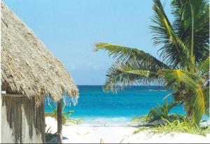 After taking a bus just outside the little airport to a rental car company, we were given a newly manufactured VW bug in the old style of the 1960’s VW bugs – it was light grey with a white interior. We buzzed noisily down the highway towards the place deeper on the Yucatan peninsula, Tulum, where my friends from New York had bought land and were building a house.